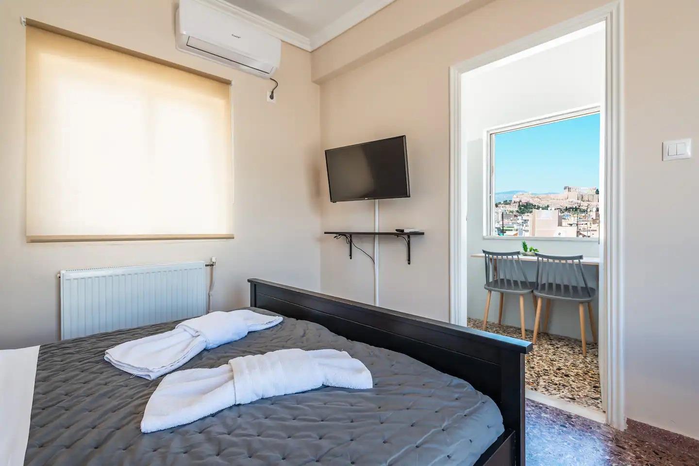 Απλός αλλά άνετος χώρος με όμορφη θέα. το μπάνιο και το στρώμα έμειναν λίγο επιθυμητά, αλλά καθώς ήμουν απλά μια μέρα δεν ήταν μεγάλο πρόβλημα, ίσως σε μια μακρά διαμονή θα ήταν. η θέα της ακροπόλεως είναι πραγματικά υπέροχη και τη νύχτα ο φωτισμός κάνει τον καιρό πολύ καλό. Σας προτείνω να πιείτε ένα καλό κρασί στο μπαλκόνι το βράδυ απολαμβάνοντας την όμορφη θέα.
